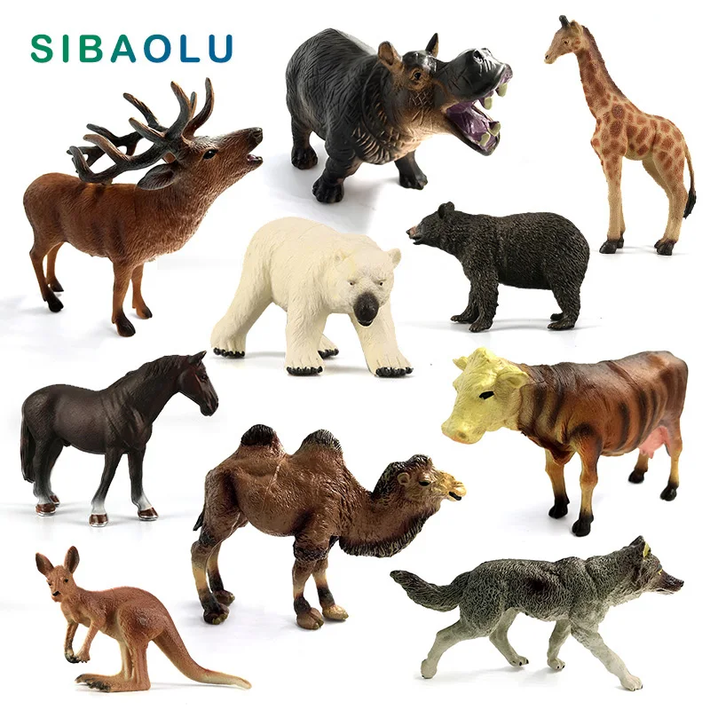 Horse camel Giraffe Deer Hippo Wolf Elephant Leopard Cow Bear Tiger Lion Animal model figurine home