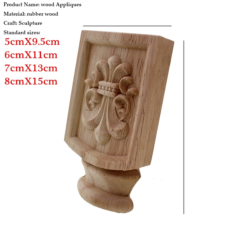 RUNBAZEF Wood Appliques Flower Carving Decals Decorative Wooden Mouldings Cabinet Door Furniture Architecture Decoration