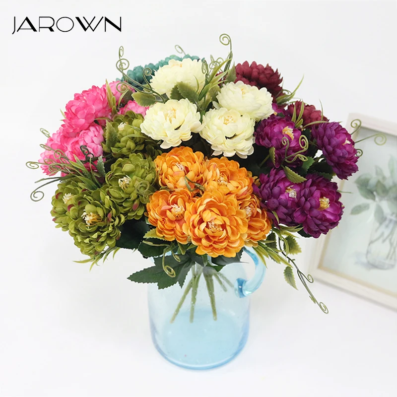Hot Sale JAROWN Simulation 7 head Daisy Flower Silk Artificial Chrysanthemum Flowers DIY Bouquet Home Weddin