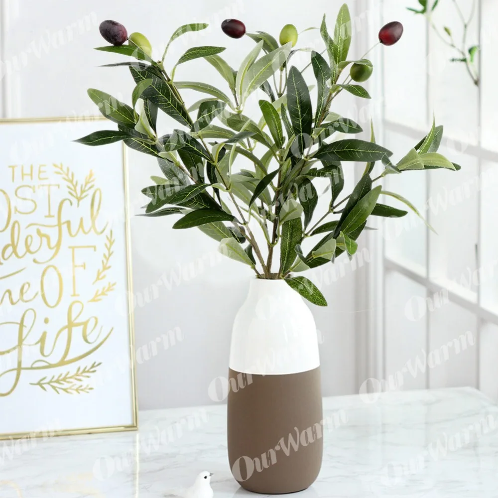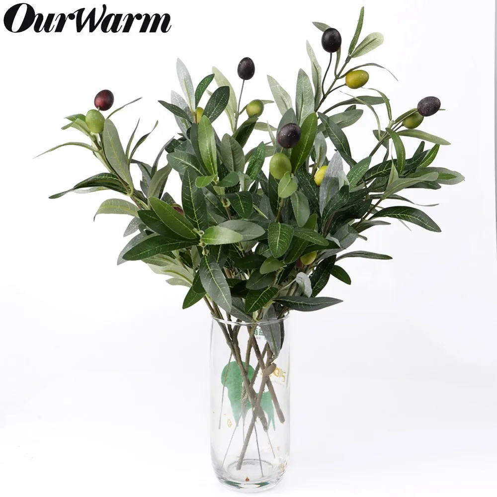 OurWarm Artificial Green Plant Olive Branch Fake Silk Leaves Fruits Home Decor Wedding Party Table Decoration Home Vase Decor