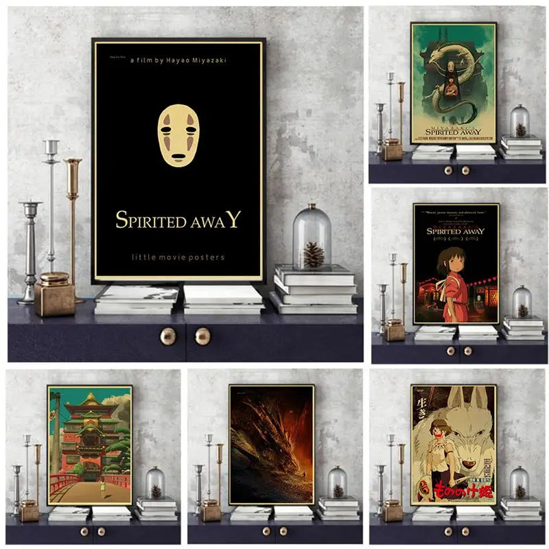 Ghibli Miyazaki Hayao animation Spirited Away Retro Poster Vintage poster Wall Decor For Home Bar Cafe forkid room