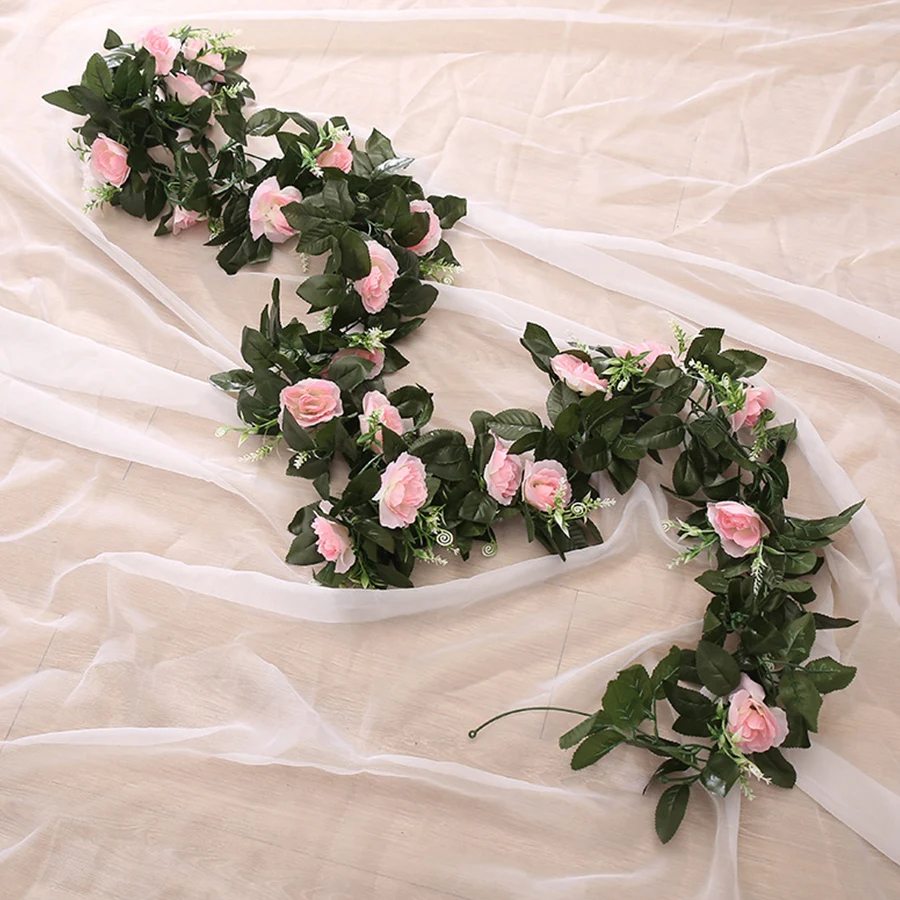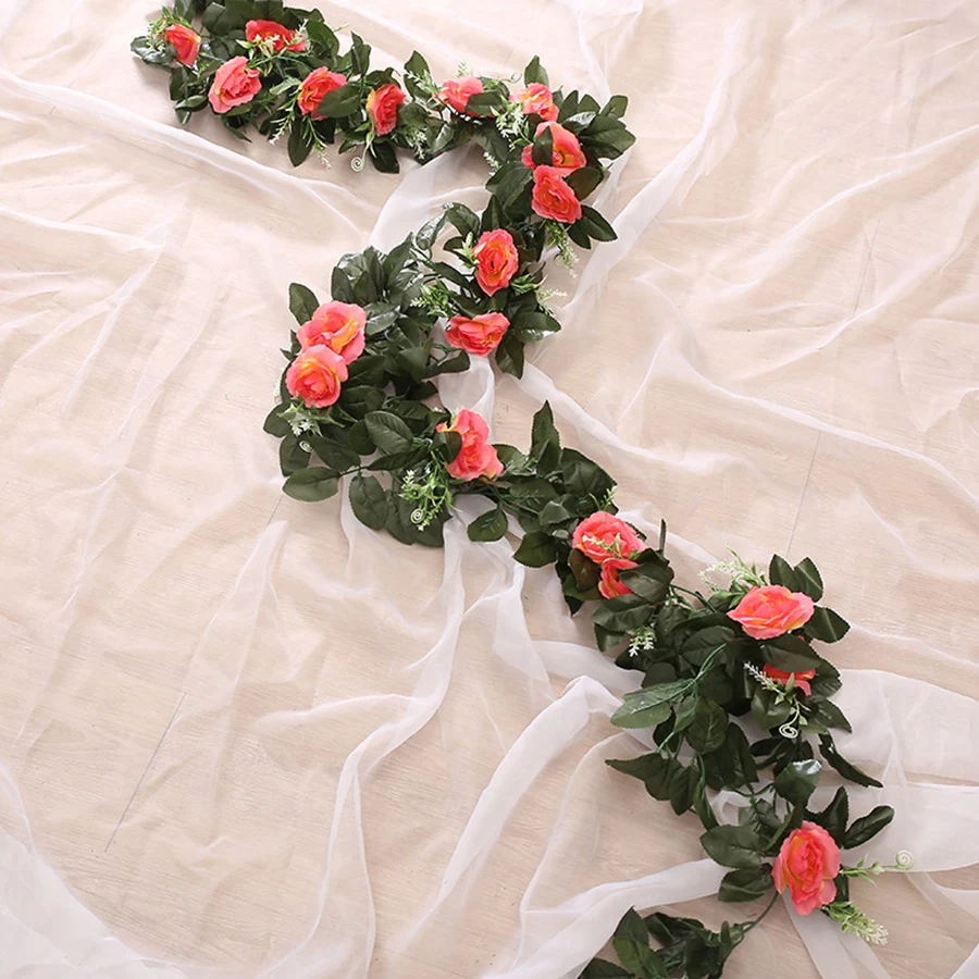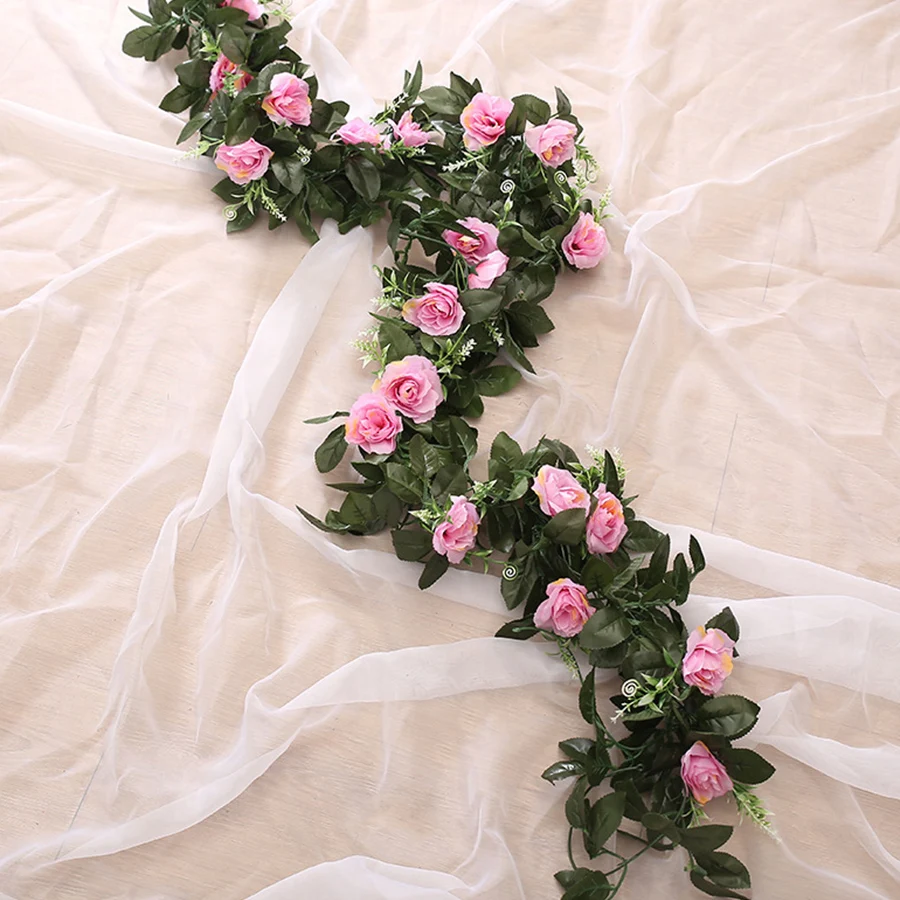 Silk Rose Artificial Flowers Vine Garland Fake Ivy Arch Hanging Decorative Wedding Home Wall Rattan Plants Leaves Decoration
