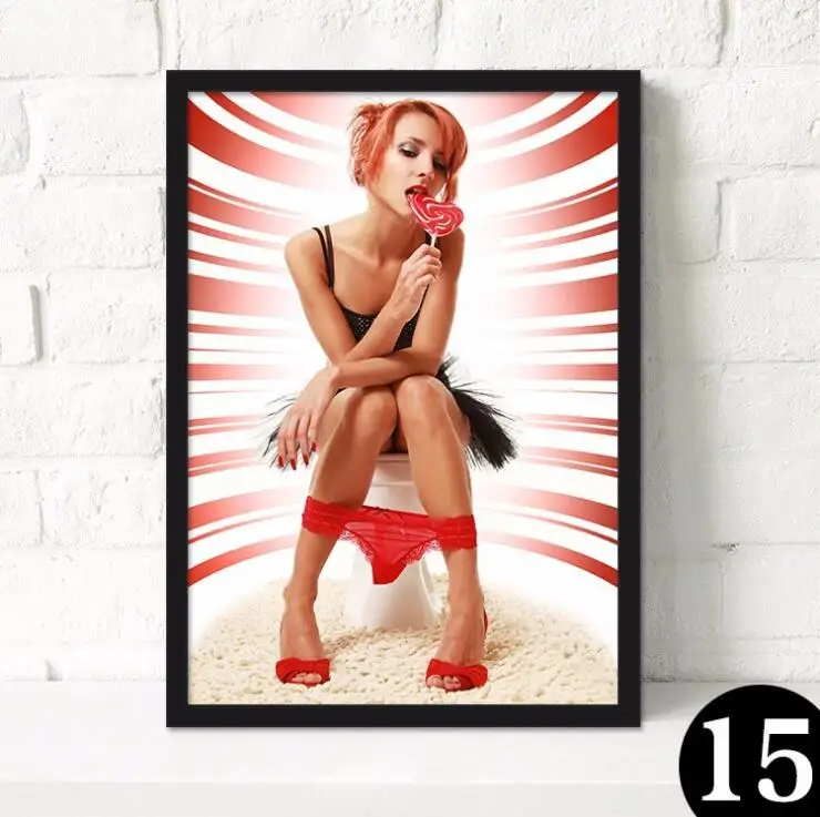Discount Modern Sexy Charming Woman Beauty Canvas Painting Toilet Bar Home Decoration Art Poster Wall Pictur