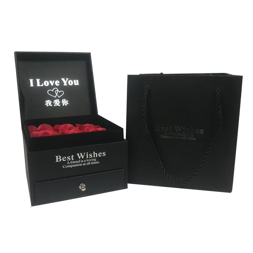Beautiful Red Rose Flower Jewelry Box with I Love You Necklace/ring for Girlfriend Mother' Day Gift