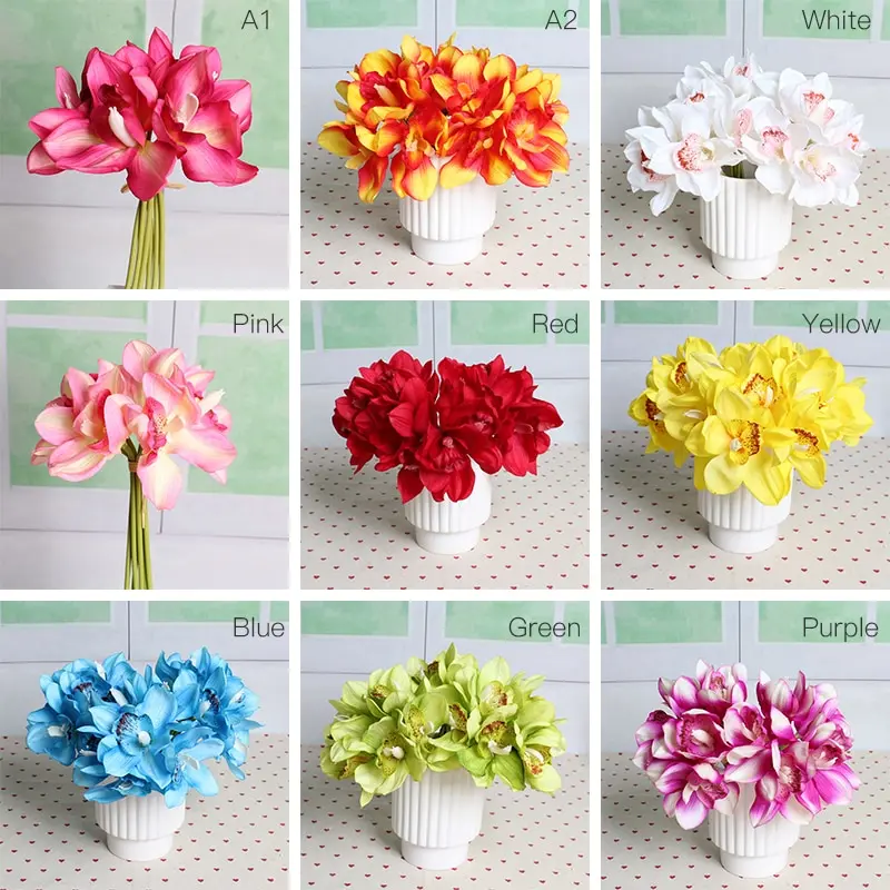 Premium Price of 6 Heads Real Touch Cymbidium Short Shoot Table Decoration Artificial Orchid Flower DIY Wedding Brid