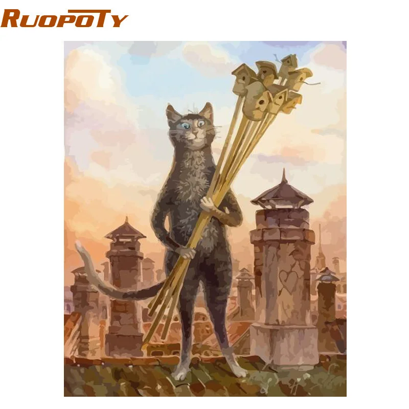 RUOPOTY Frame animals cats DIY painting by numbers kits modern wall art picture canvas paint unique
